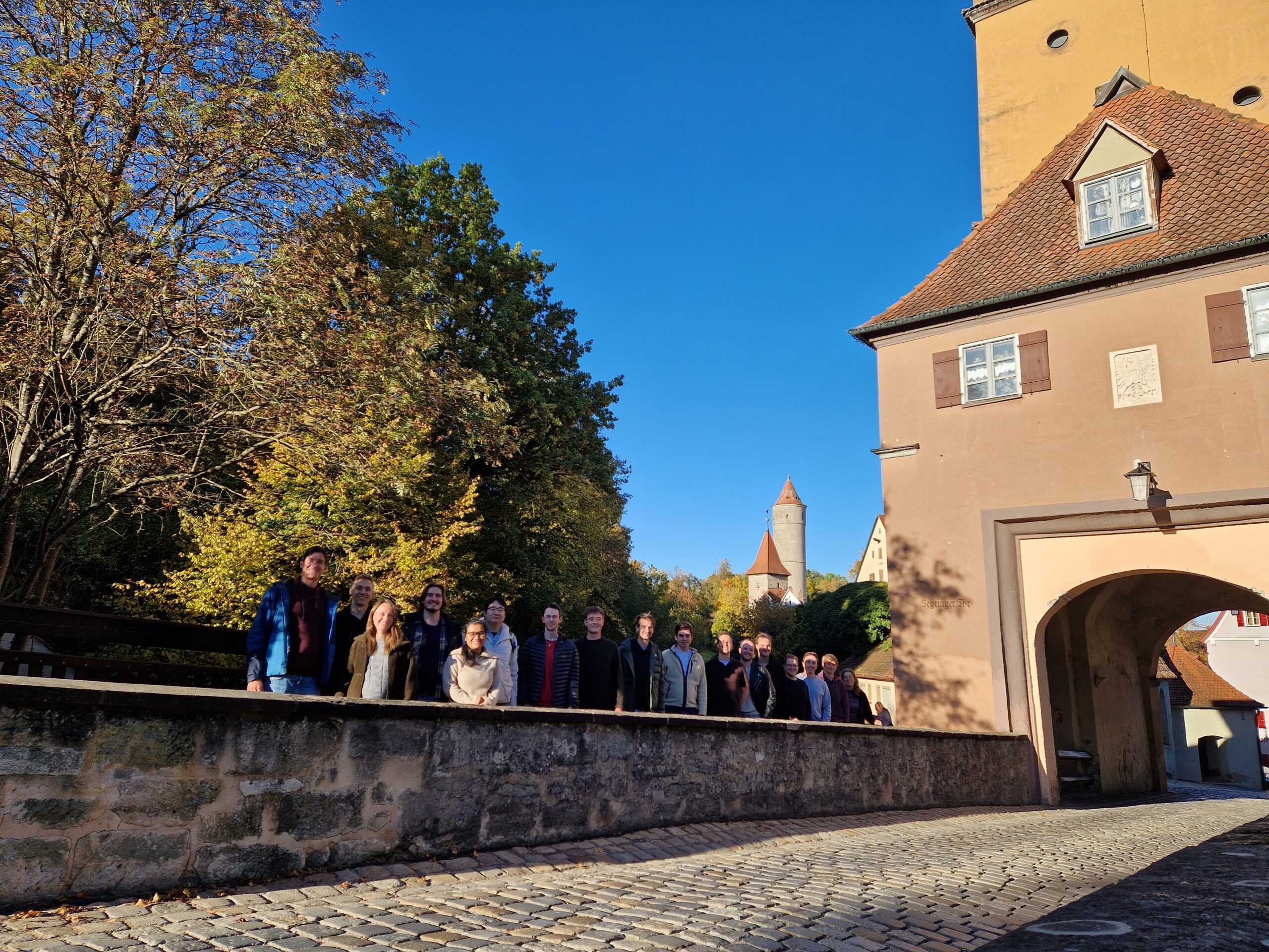 Den Auftakt bildete das Doctoral Consortium, bei dem Promovierende ihre Dissertationsthemen in parallelen Sessions vorstellten und diskutierten. Am Nachmittag standen die Optimierung interner Abläufe sowie die gemeinsame virtuelle Teilnahme am Promotionsvortrag von Huong Nguyen auf dem Programm. Im Anschluss erkundete das Team die mittelalterliche Altstadt von Dinkelsbühl. Eine historische Führung, die unter anderem den Rothenburger Turm einschloss, bot spannende Einblicke in die Stadtgeschichte. Der gemeinsame Ausklang des Tages stärkte den Teamgeist und bot Raum für Gespräche abseits der Fachthemen.