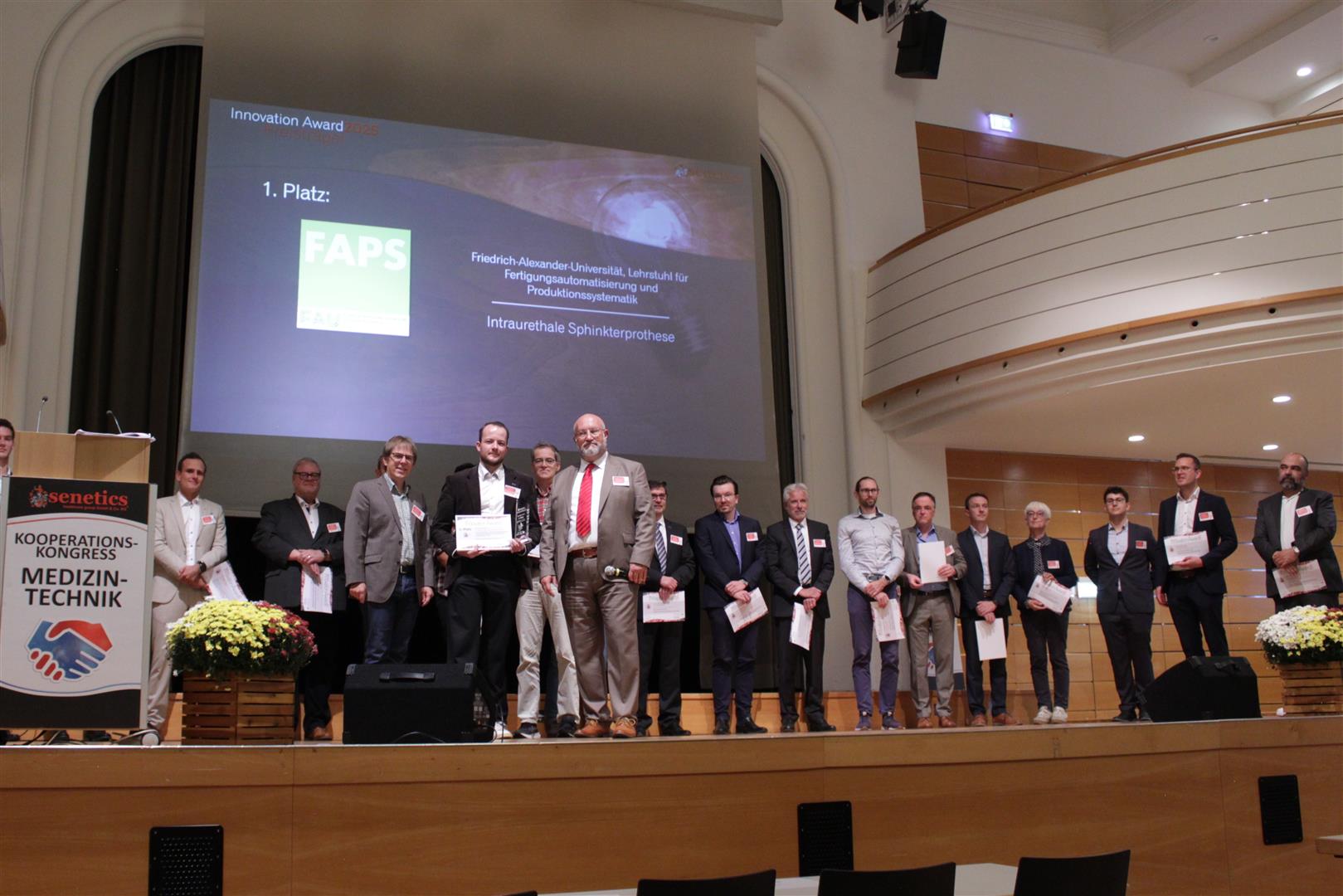Die von Alexander Preis, Dr.-Ing. Sebastian Reitelshöfer, Prof. Dr. med. Ralf Rieker und Prof. Dr. med. Thomas Ebert erforschte intraurethrale Sphinkterprothese leitet einen Paradigmenwechsel in der Therapie der Belastungsharninkontinenz ein und zeichnet sich durch einen minimalinvasiven Ansatz aus, der eine ambulante Implantation ermöglicht. Im Gegensatz zu bisherigen Lösungen, welche hauptsächlich Männer adressieren, ist das neuartige Implantat geschlechtsunabhängig anwendbar und benötigt keine langwierige Heilungsphase bevor es genutzt werden kann. Zudem überzeugt das System durch eine intuitive Bedienbarkeit, was die Lebensqualität der Betroffenen erheblich steigern kann.